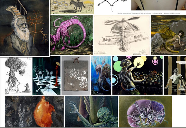 Glendon Mellow is a fine artist + illustrator whose projects have ranged from fine art commissions to tattoo design to museum display; appearing in magazines such as Earth and Secular Nation, in books such as Geology in Art and The Open Laboratory and sites such as io9.com. He has spoken at the Centre for Inquiry Ontario and at ScienceOnline. Glendon is a co-blogger on the new Scientific American science-art blog Symbiartic and shares his art process at his blog The Flying Trilobite, and tweets at @flyingtrilobite. His portfolio can be found at glendonmellow.com.